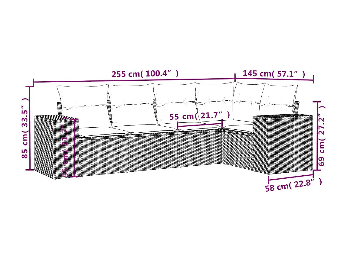 Salon de jardin avec coussins 5 pcs marron résine tressée