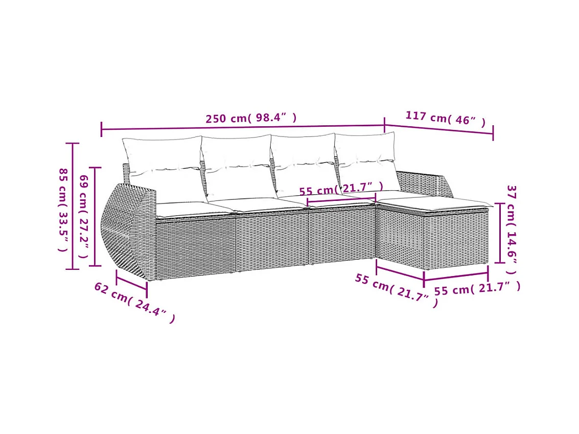 Salon de jardin 4 pcs avec coussins noir résine tressée