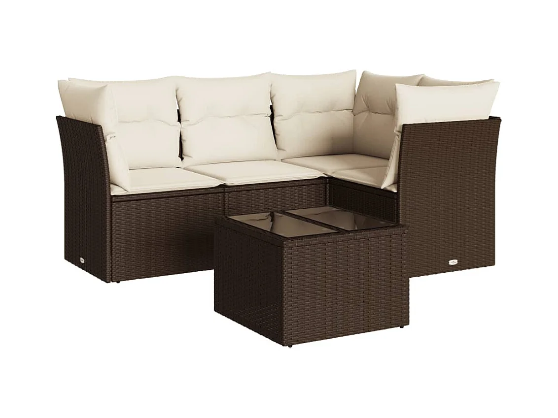Salon de jardin avec coussins 5 pcs marron résine tressée