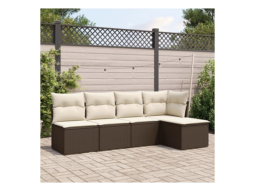 Salon de jardin avec coussins 5 pcs marron résine tressée FR14573