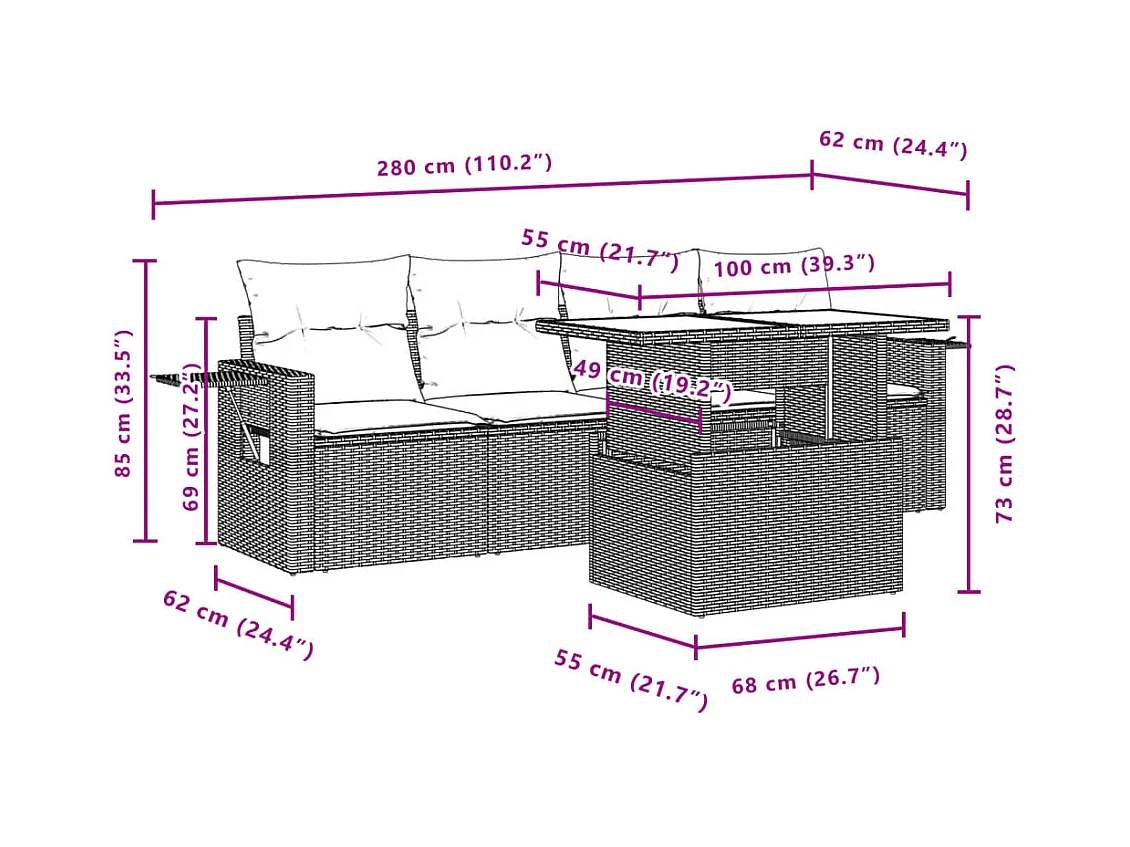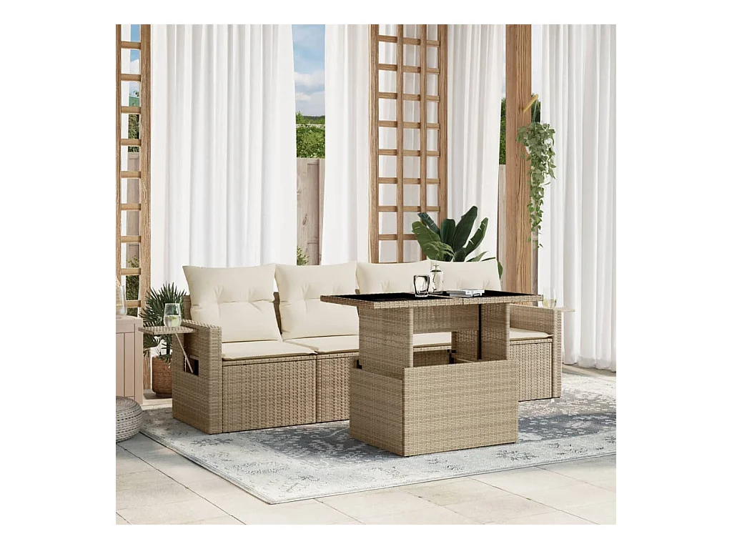 Salon de jardin avec coussins 5 pièces beige résine tressée