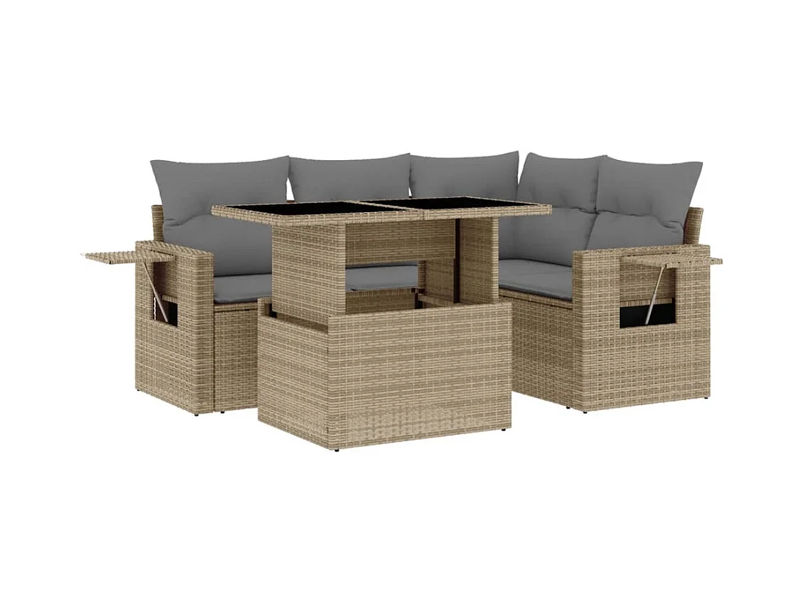 Salon de jardin avec coussins 5 pièces beige résine tressée