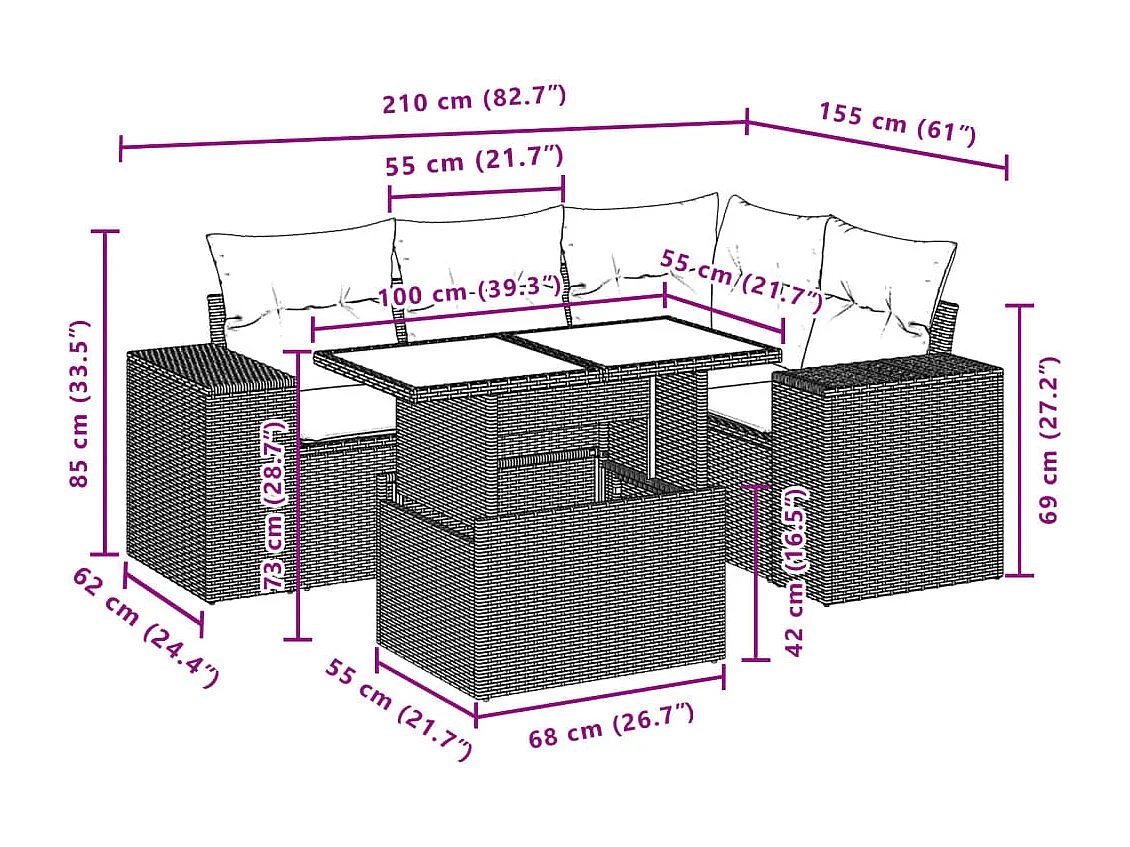 Salon de jardin avec coussins 5 pièces beige résine tressée