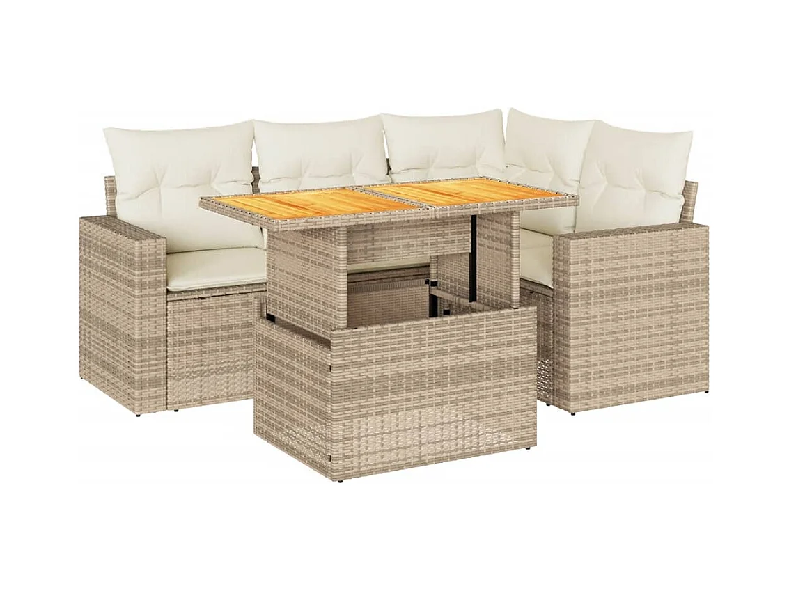 Salon de jardin avec coussins 5 pièces beige résine tressée