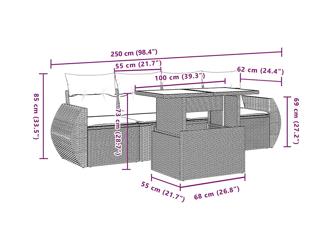 Salon de jardin avec coussins 5 pièces beige résine tressée