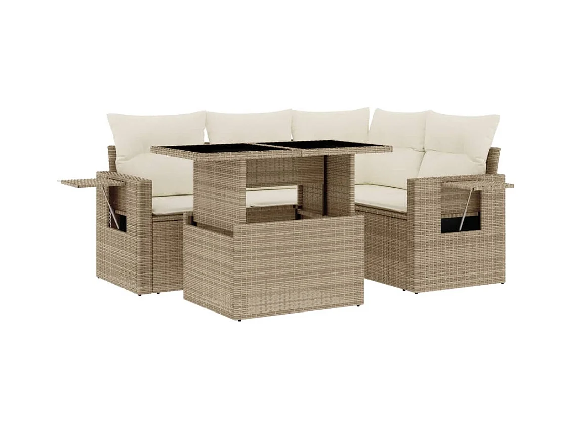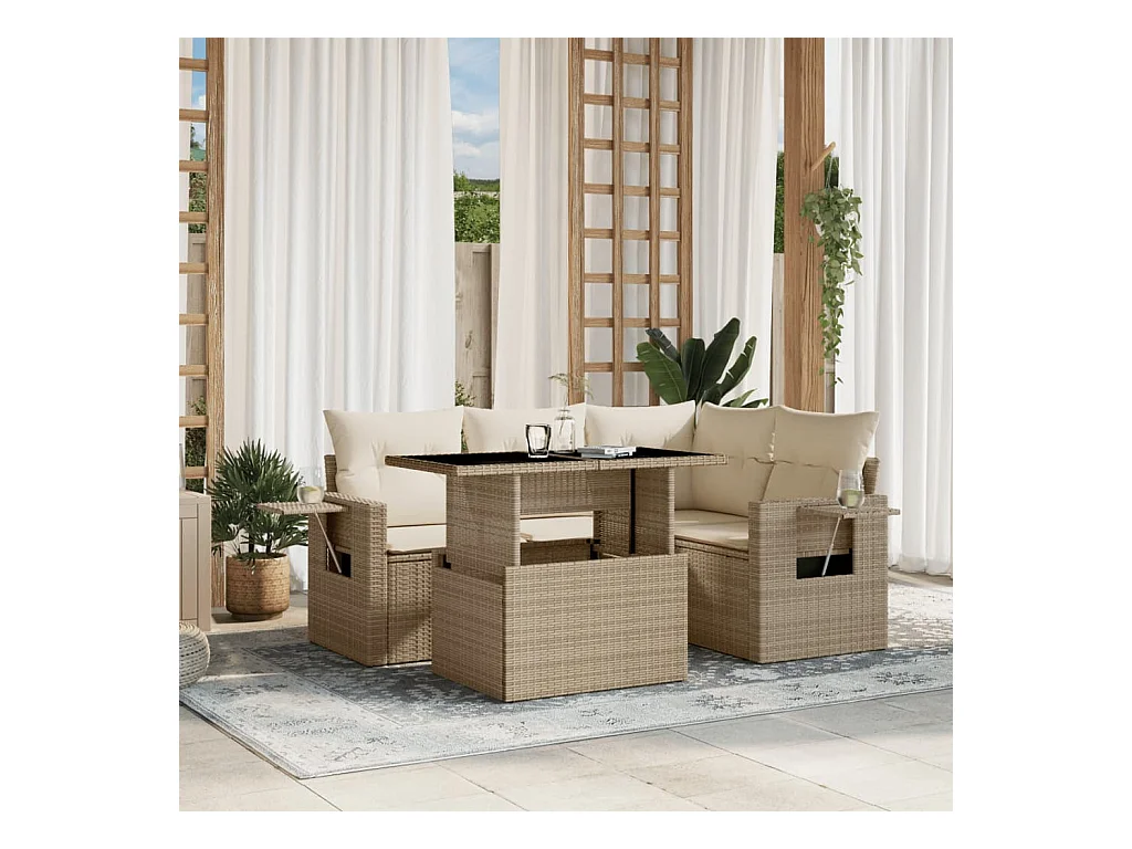 Salon de jardin avec coussins 5 pièces beige résine tressée