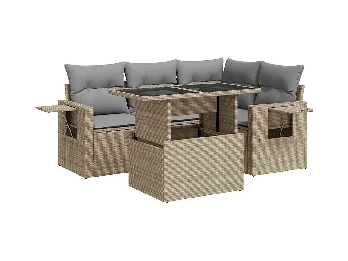 Salon de jardin avec coussins 5 pièces beige résine tressée