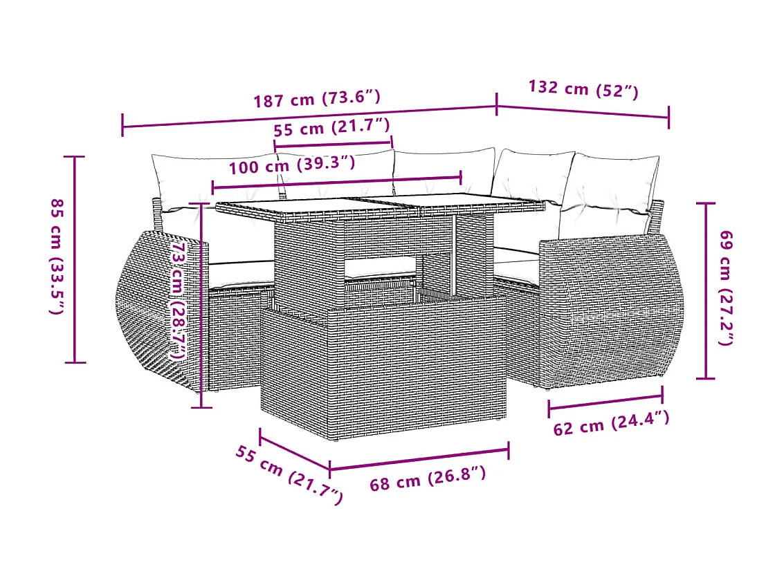 Salon de jardin avec coussins 5 pièces beige résine tressée