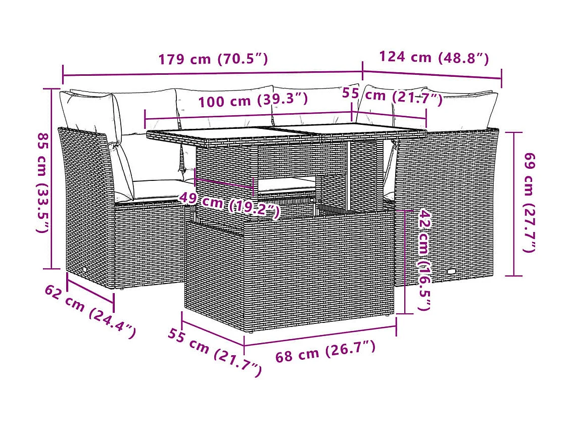 Salon complet de jardin Canapé 2 places et 2 fauteuils