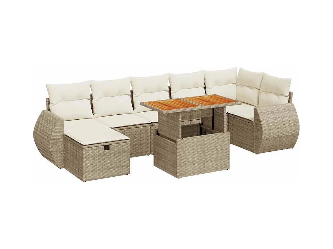 Salon de jardin avec coussins 5 pièces beige résine tressée acacia
