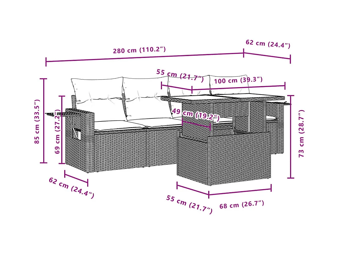 Salon complet de jardin Canapé 2 places et 2 fauteuils