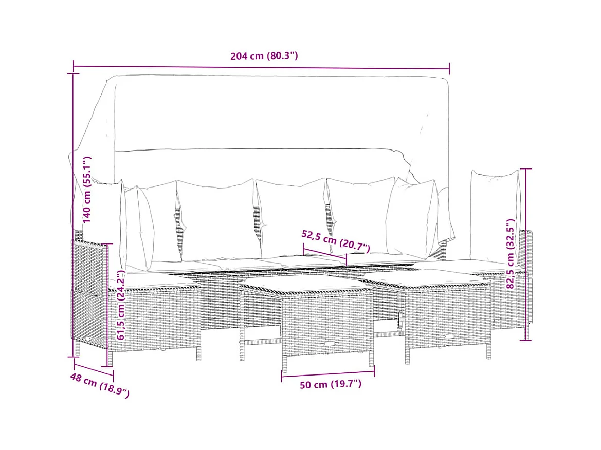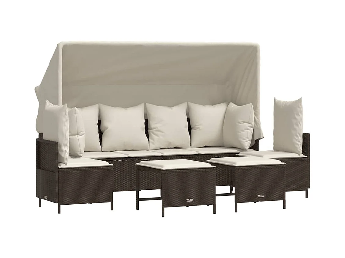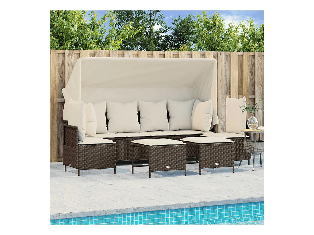 Salon de jardin avec coussins 5 pièces marron résine tressée