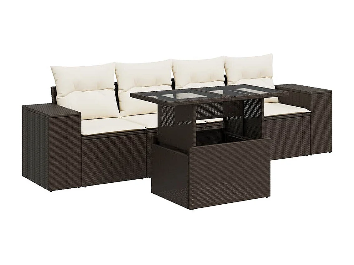 Salon de jardin avec coussins 5 pièces marron résine tressée