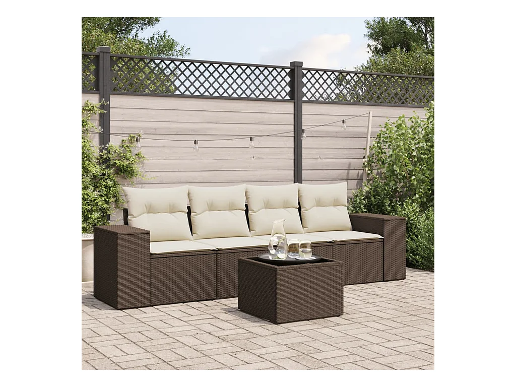 Salon de jardin avec coussins 5 pièces marron résine tressée