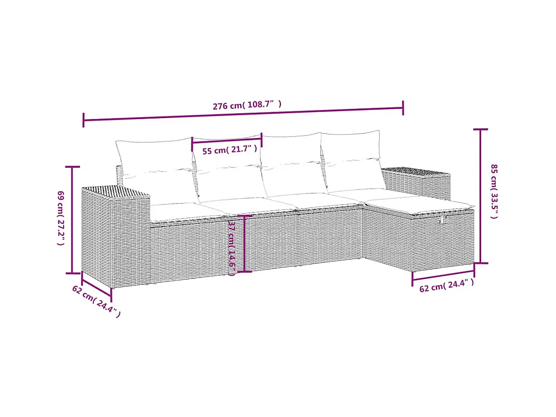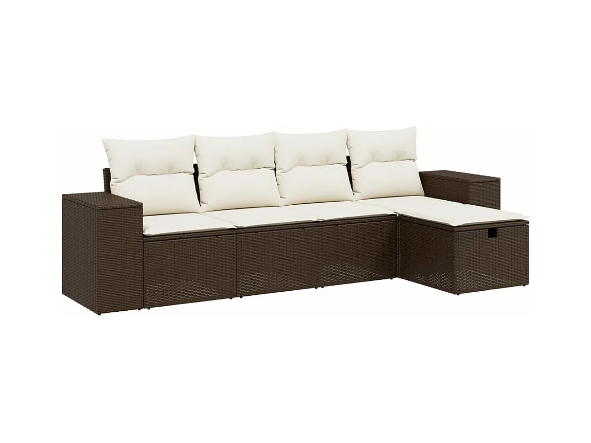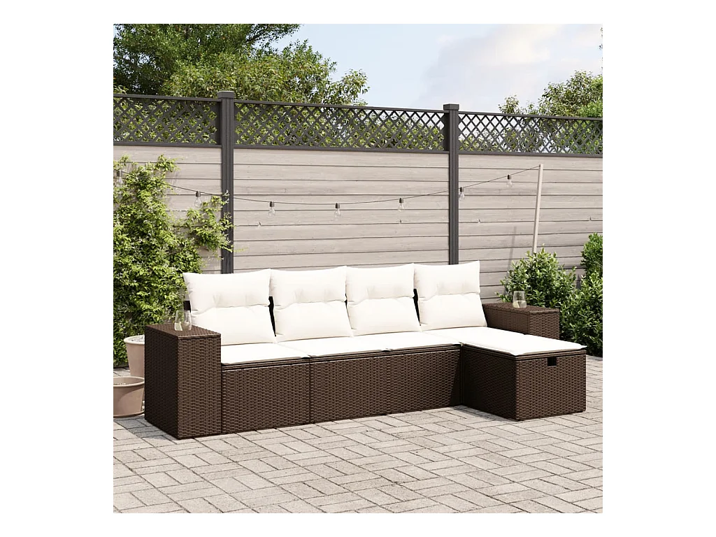 Salon de jardin avec coussins 5 pièces marron résine tressée
