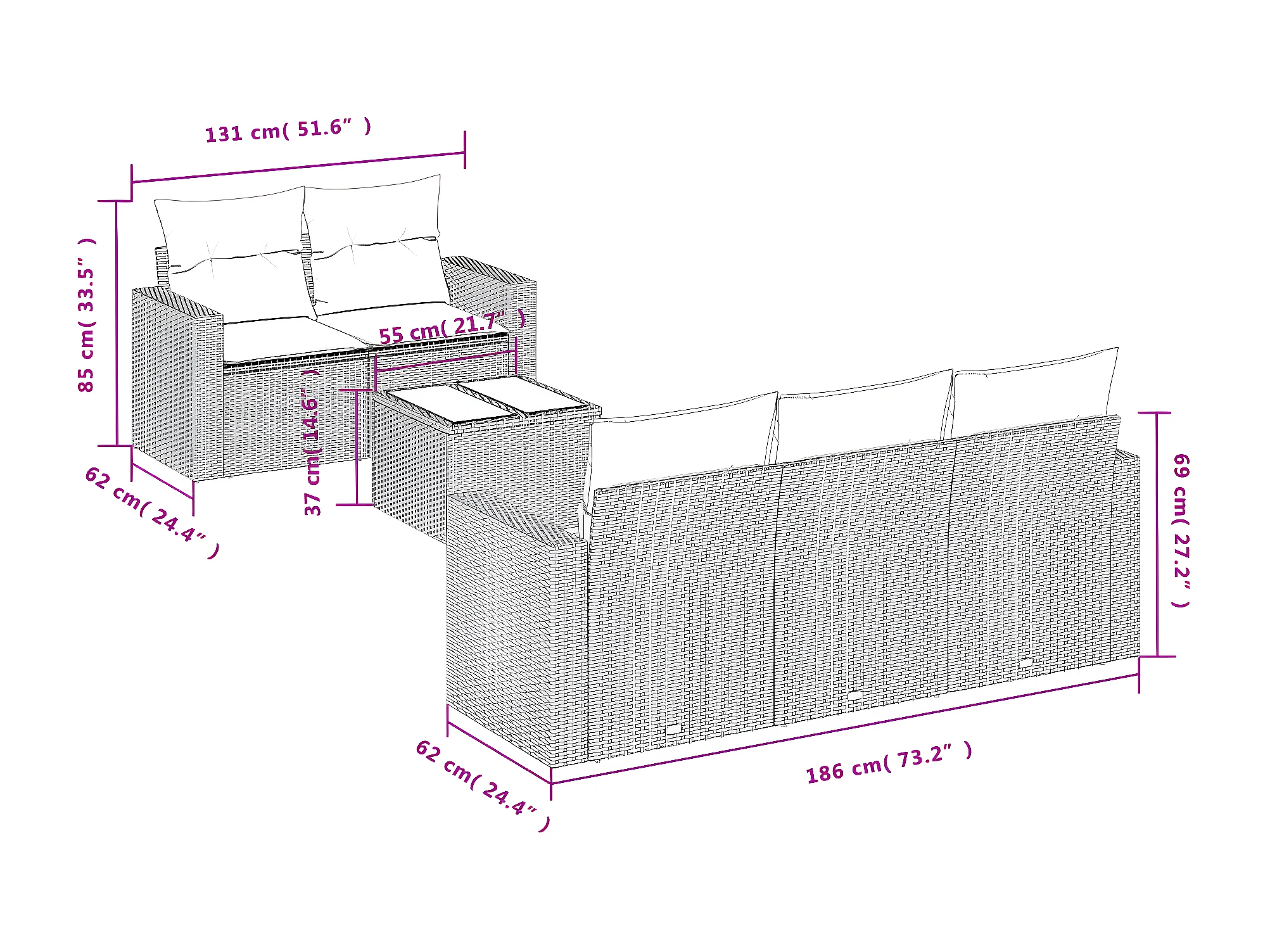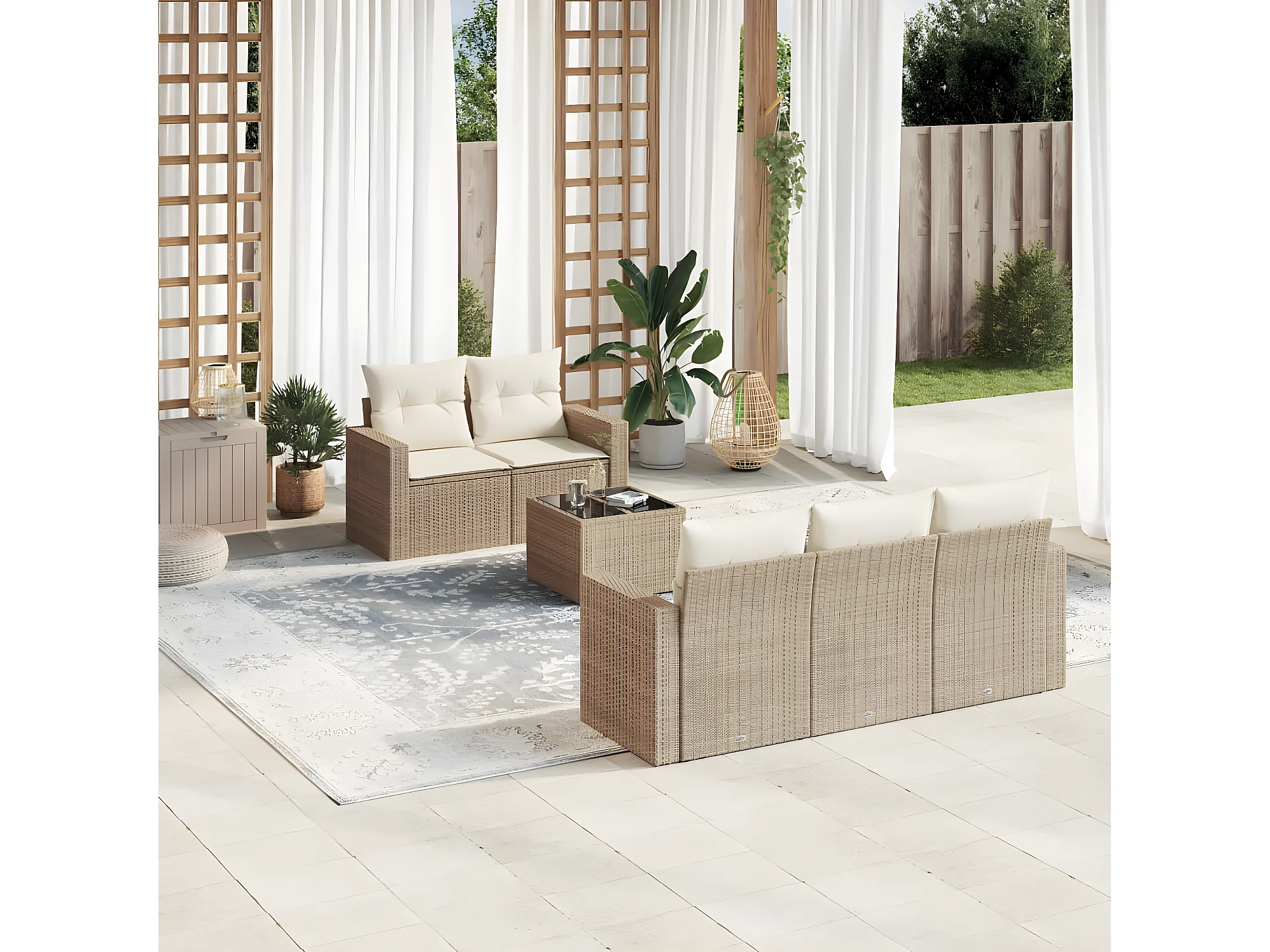 Salon de jardin avec coussins 6 pcs beige résine tressée