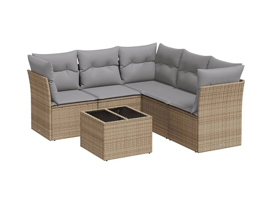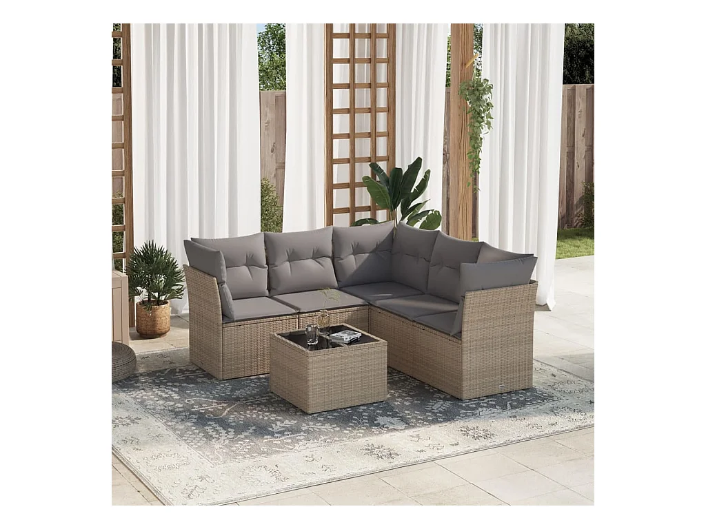 Salon de jardin avec coussins 6 pcs beige résine tressée
