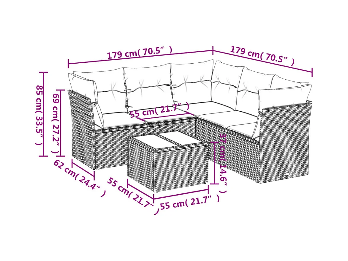Salon de jardin 6 pcs avec coussins gris résine tressée