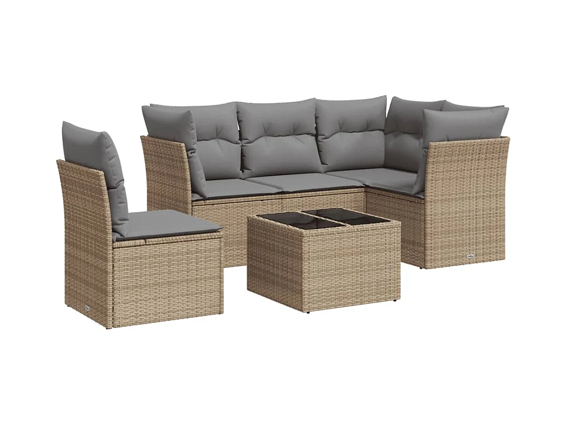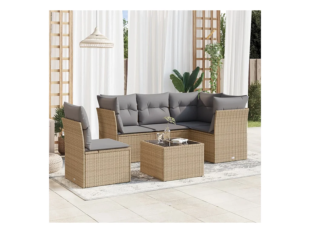 Salon de jardin avec coussins 6 pcs beige résine tressée
