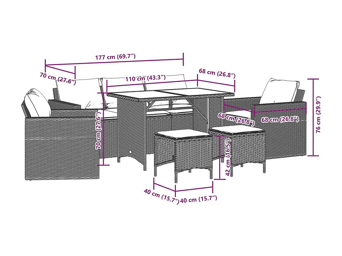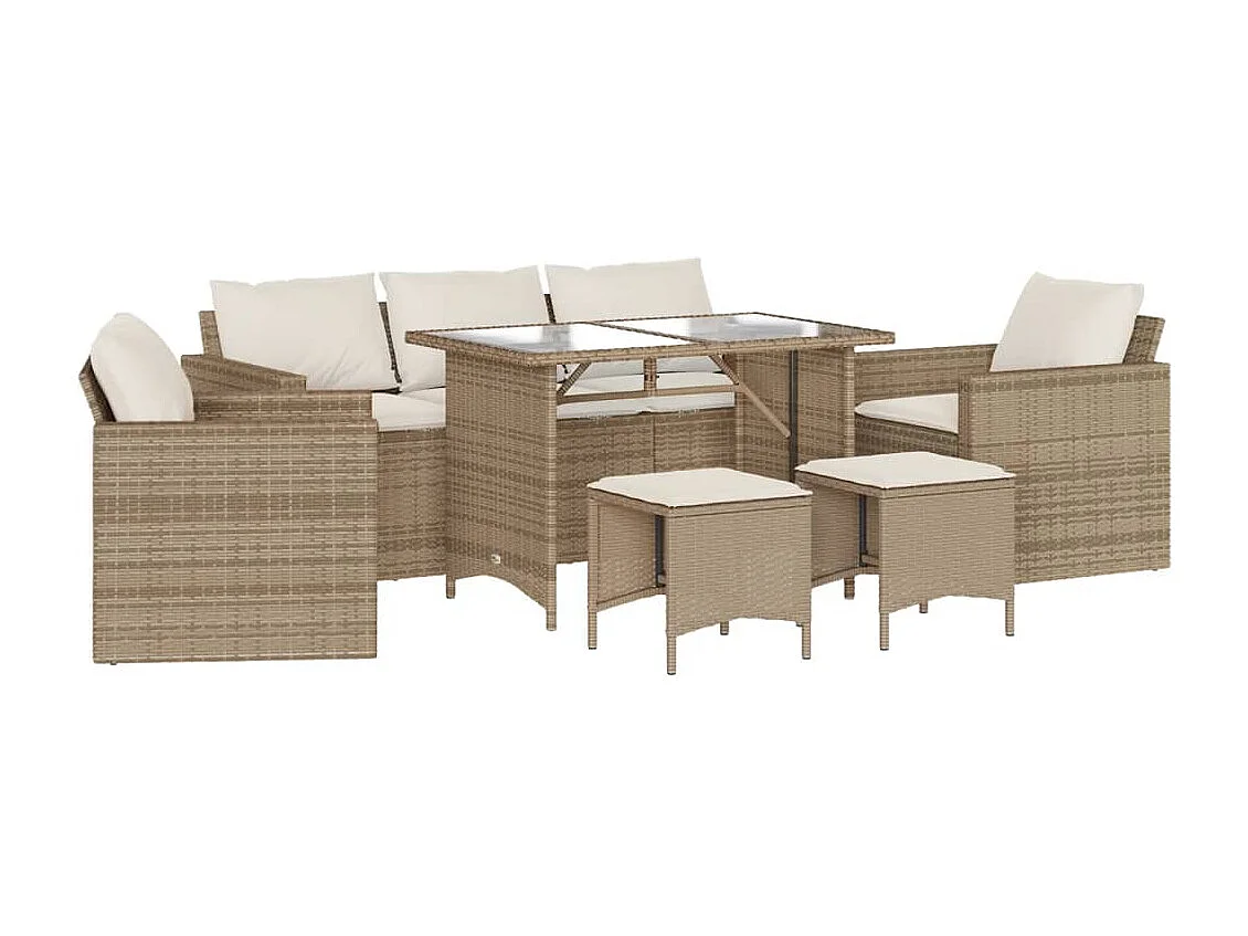Salon de jardin avec coussins 6 pcs beige résine tressée