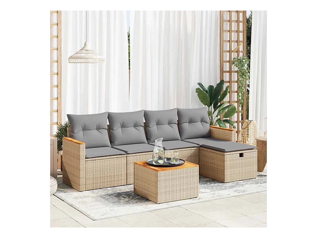 Salon de jardin avec coussins 6 pcs beige résine tressée