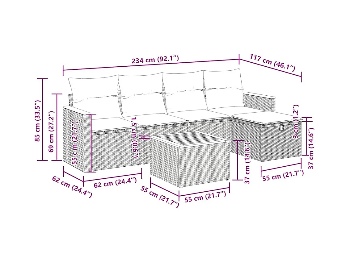 Salon complet de jardin Canapé 2 places et 2 fauteuils