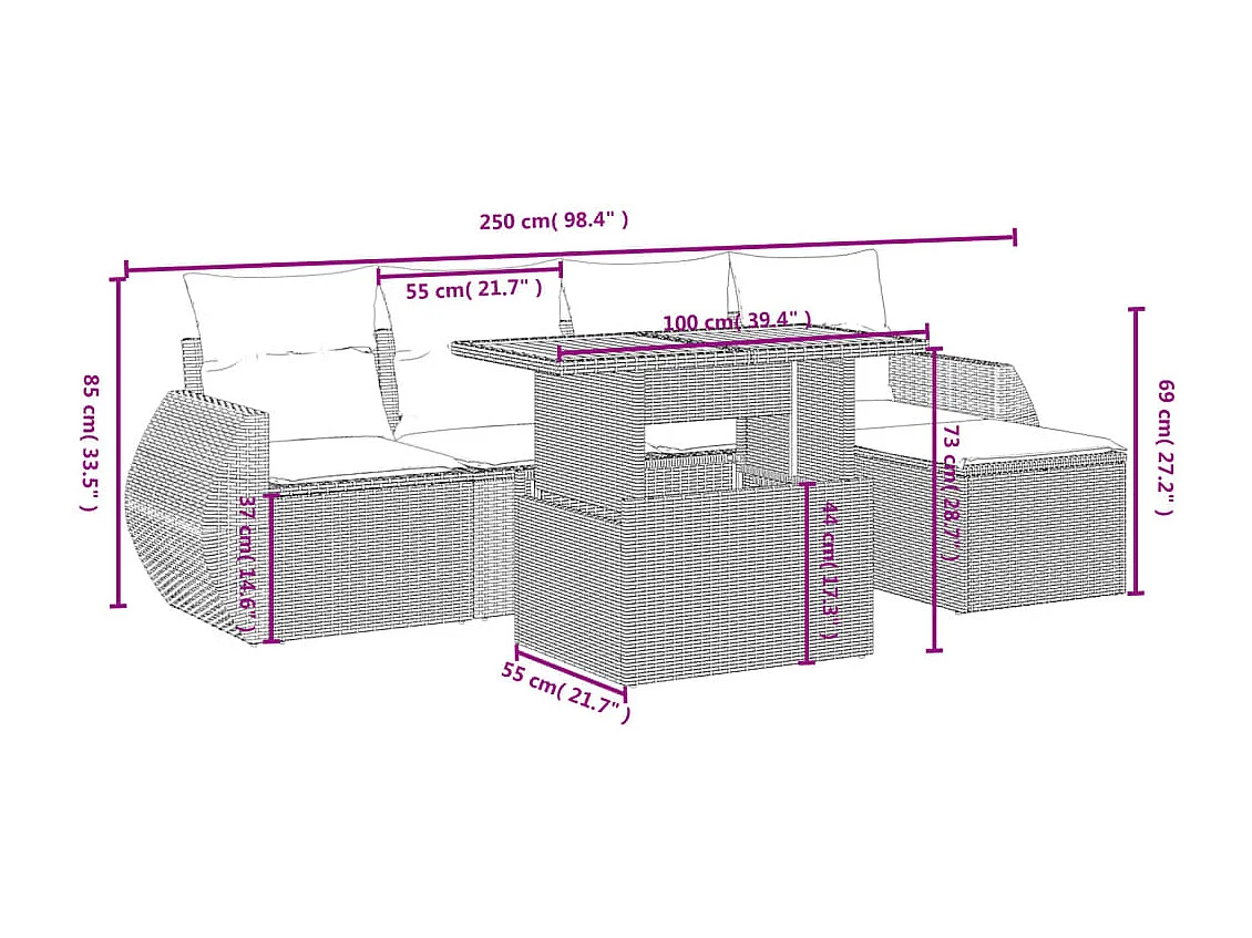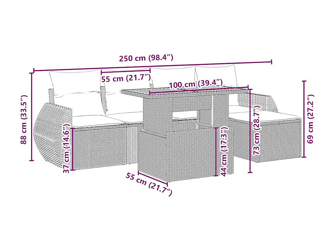 Salon complet de jardin Canapé 2 places et 2 fauteuils