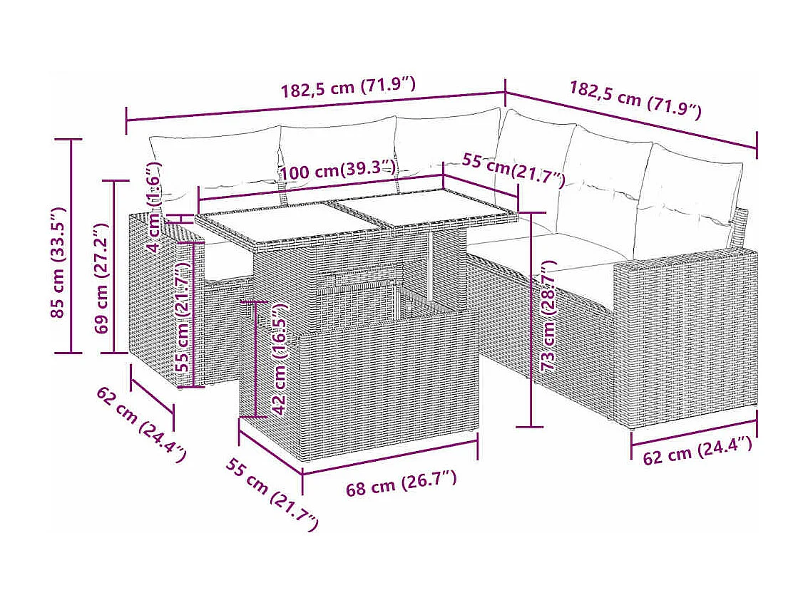 Salon complet de jardin Canapé 2 places et 2 fauteuils