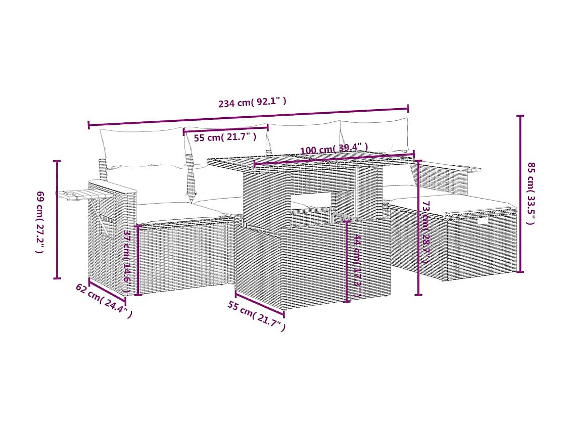 Salon complet de jardin Canapé 2 places et 2 fauteuils