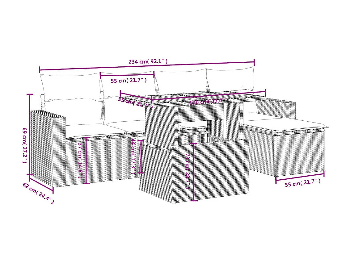 Salon complet de jardin Canapé 2 places et 2 fauteuils