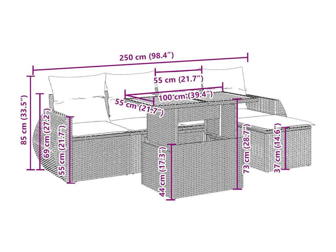 Salon de jardin avec coussins 6 pcs beige résine tressée