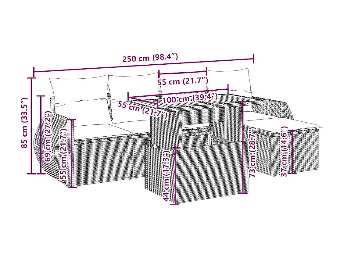 Salon complet de jardin Canapé 2 places et 2 fauteuils