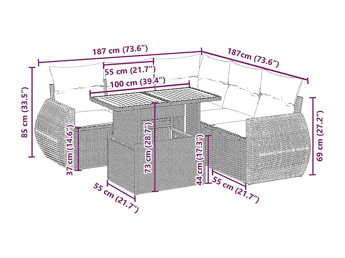 Salon complet de jardin Canapé 2 places et 2 fauteuils