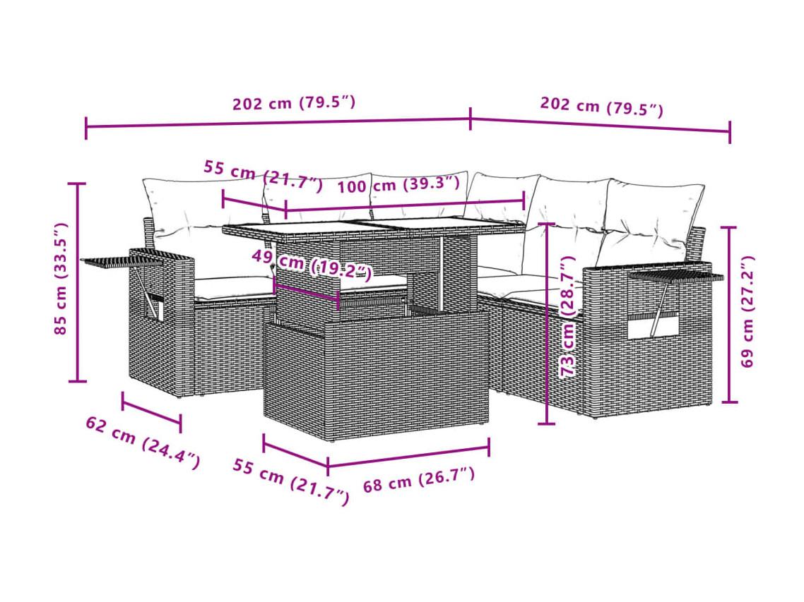 Salon de jardin avec coussins 6 pcs beige résine tressée