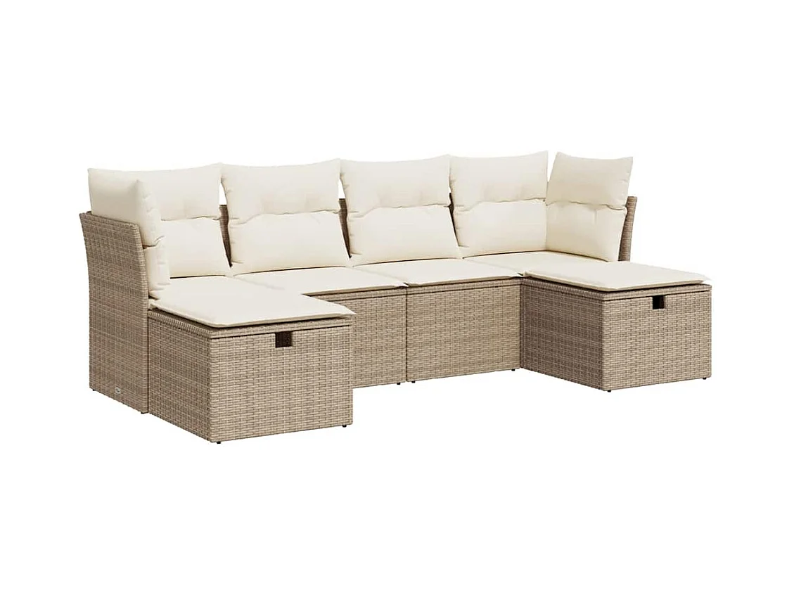 Salon de jardin avec coussins 6 pcs beige résine tressée