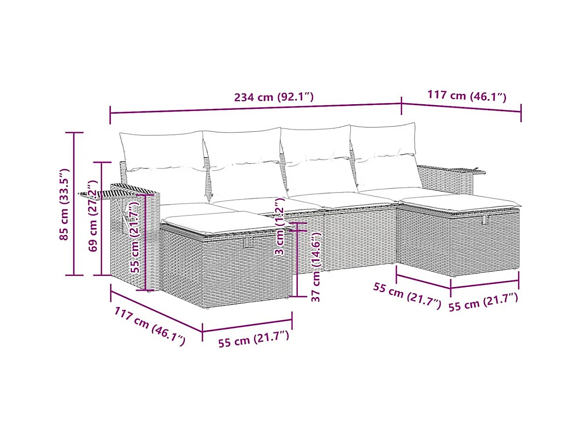 Salon complet de jardin Canapé 2 places et 2 fauteuils