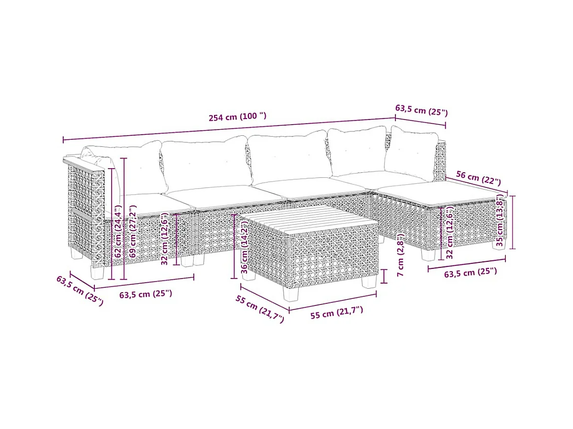 Salon complet de jardin Canapé 2 places et 2 fauteuils
