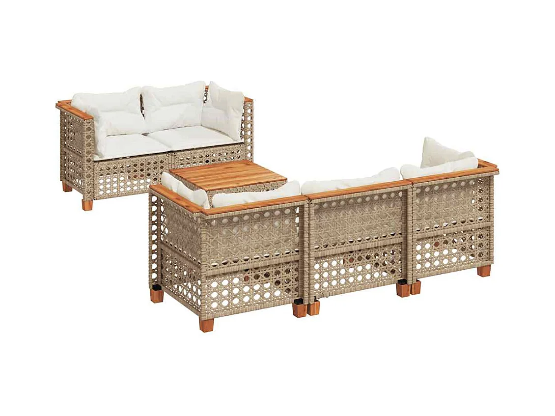 Salon de jardin avec coussins 6 pcs beige résine tressée