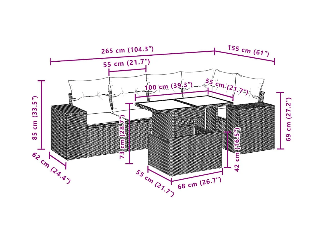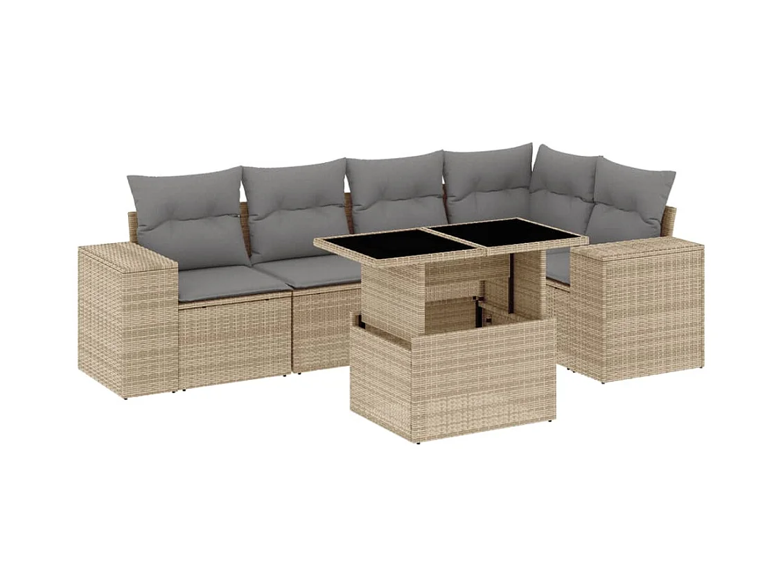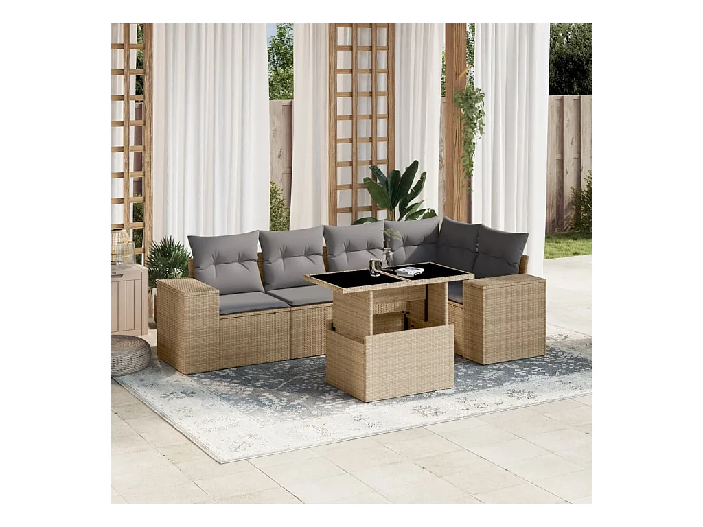 Salon de jardin avec coussins 6 pcs beige résine tressée