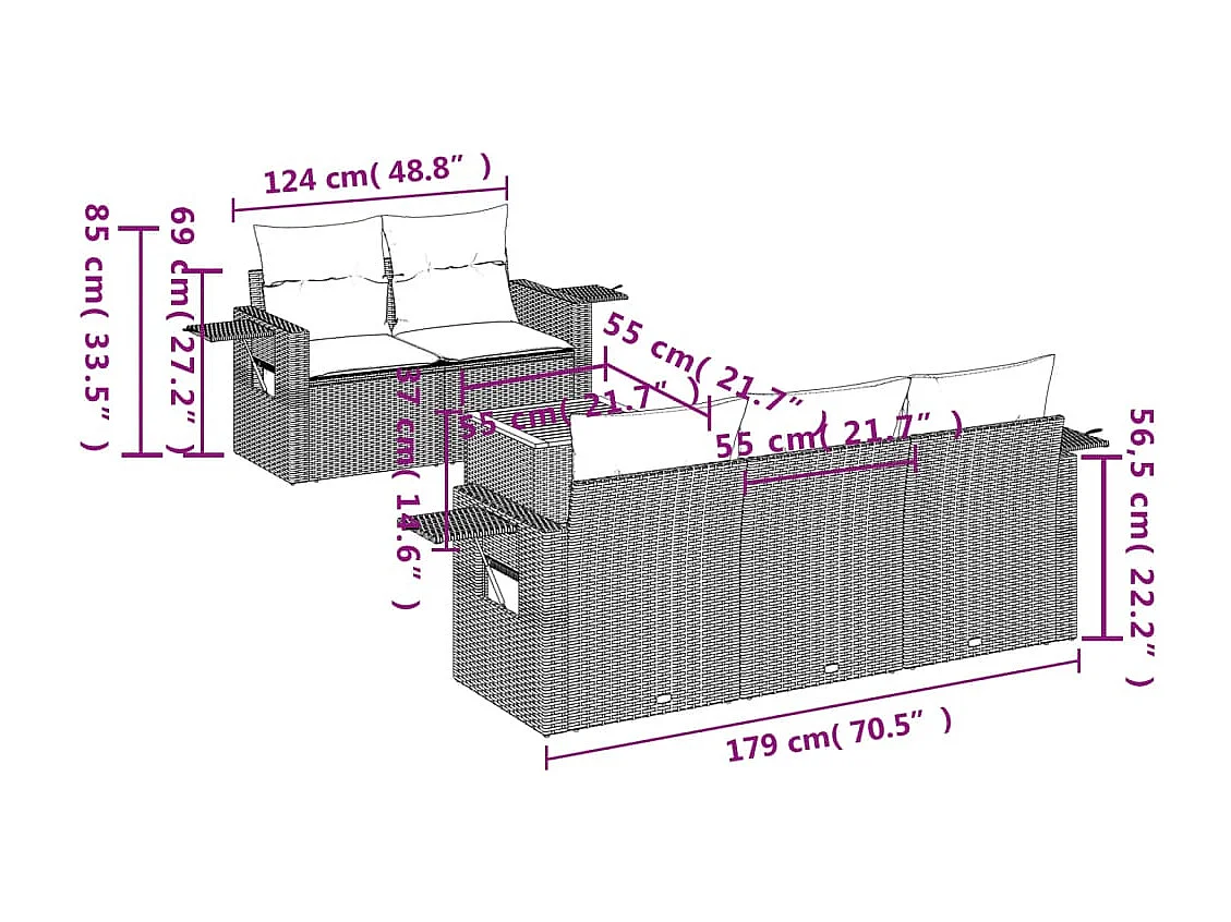 Salon complet de jardin Canapé 2 places et 2 fauteuils