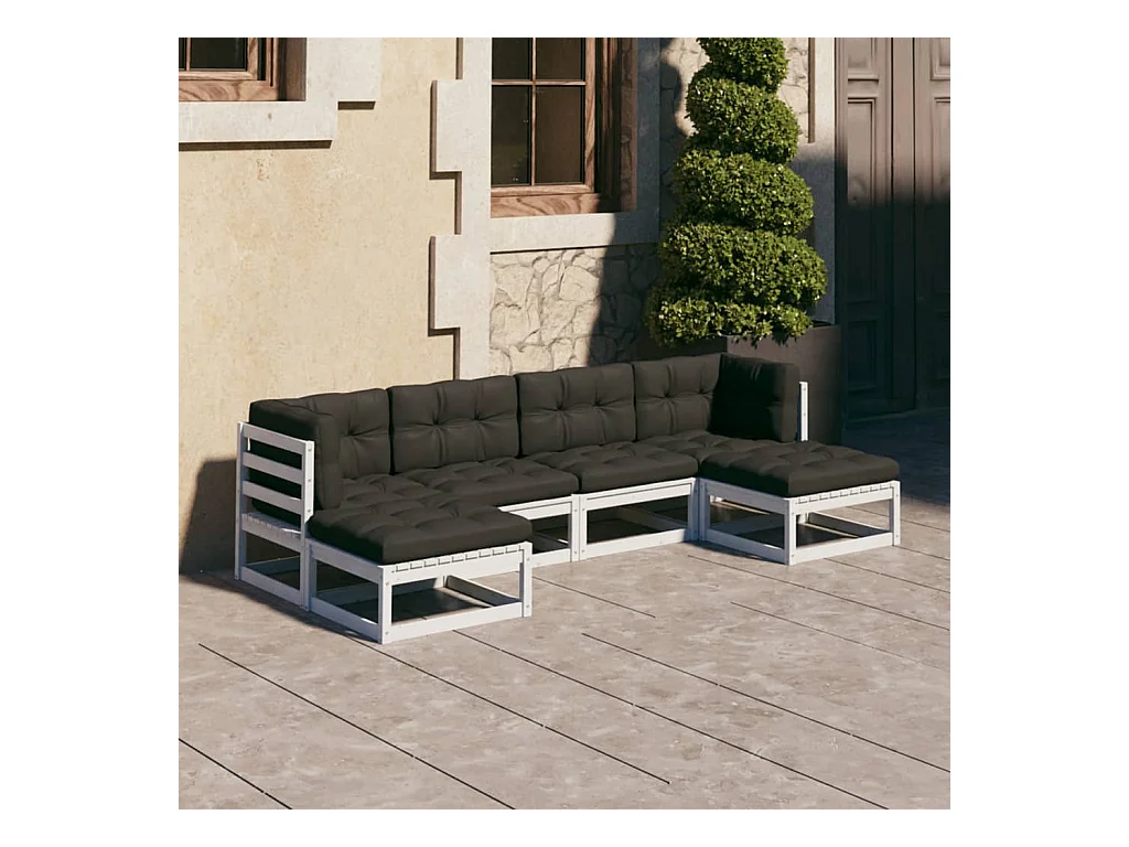 Salon de jardin avec coussins 6 pcs blanc bois de pin massif