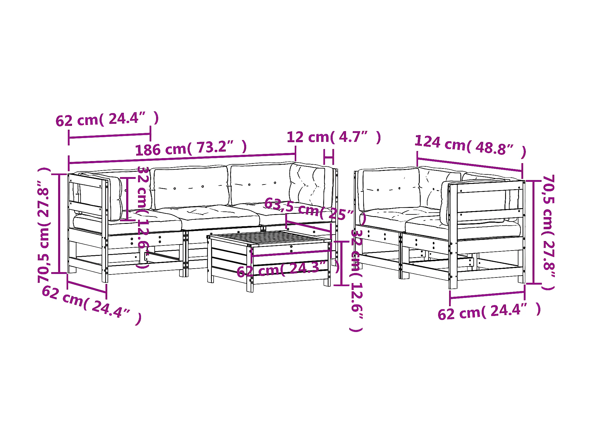 Salon de jardin avec coussins 6 pcs blanc bois de pin massif