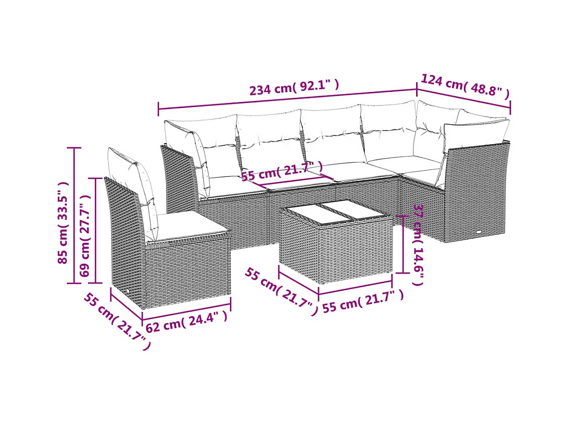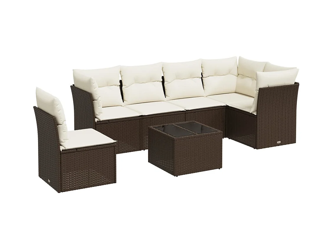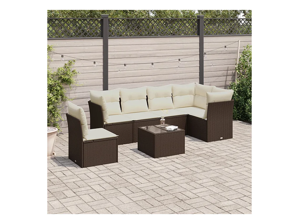 Salon de jardin avec coussins 7 pcs marron résine tressée