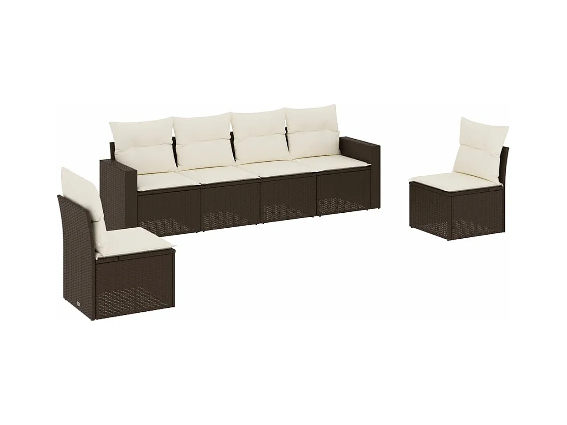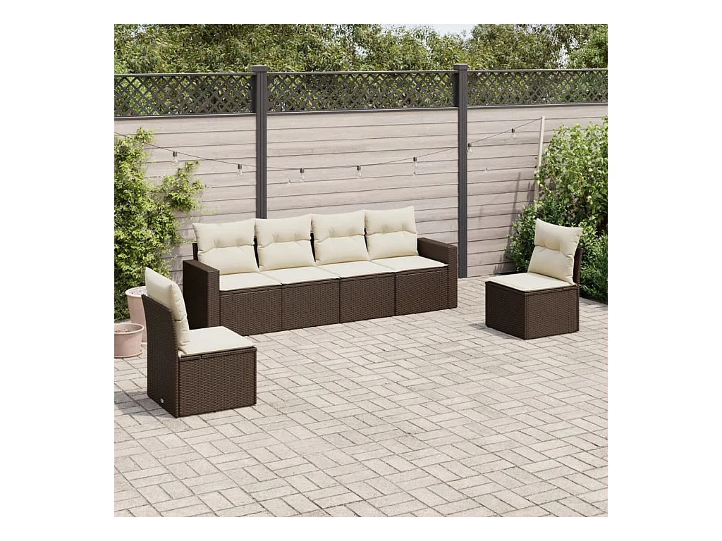 Salon de jardin avec coussins 6 pcs marron résine tressée