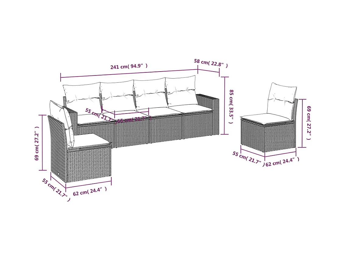 Salon complet de jardin Canapé 2 places et 2 fauteuils
