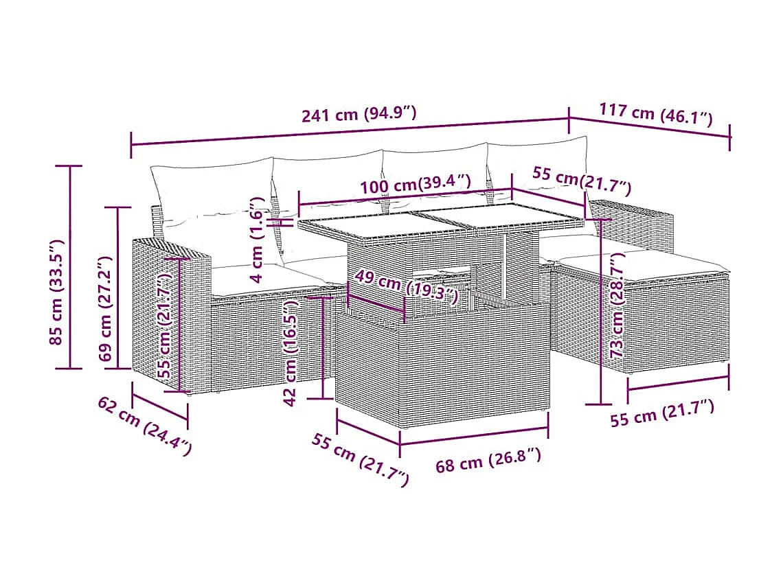 Salon complet de jardin Canapé 2 places et 2 fauteuils