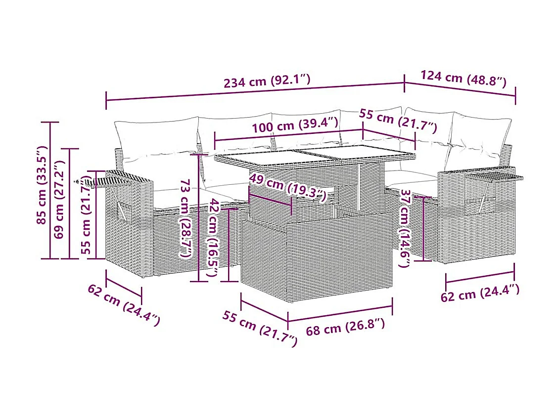 Salon complet de jardin Canapé 2 places et 2 fauteuils