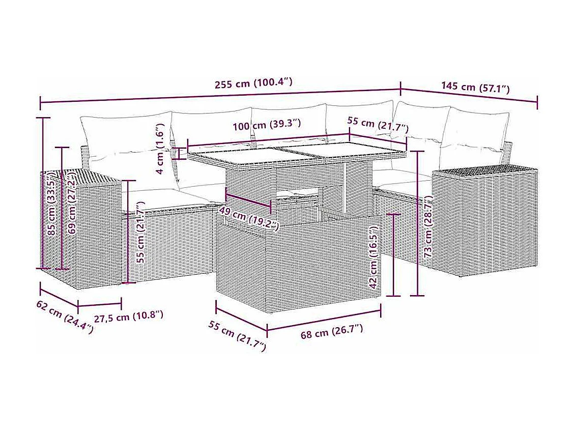 Salon complet de jardin Canapé 2 places et 2 fauteuils