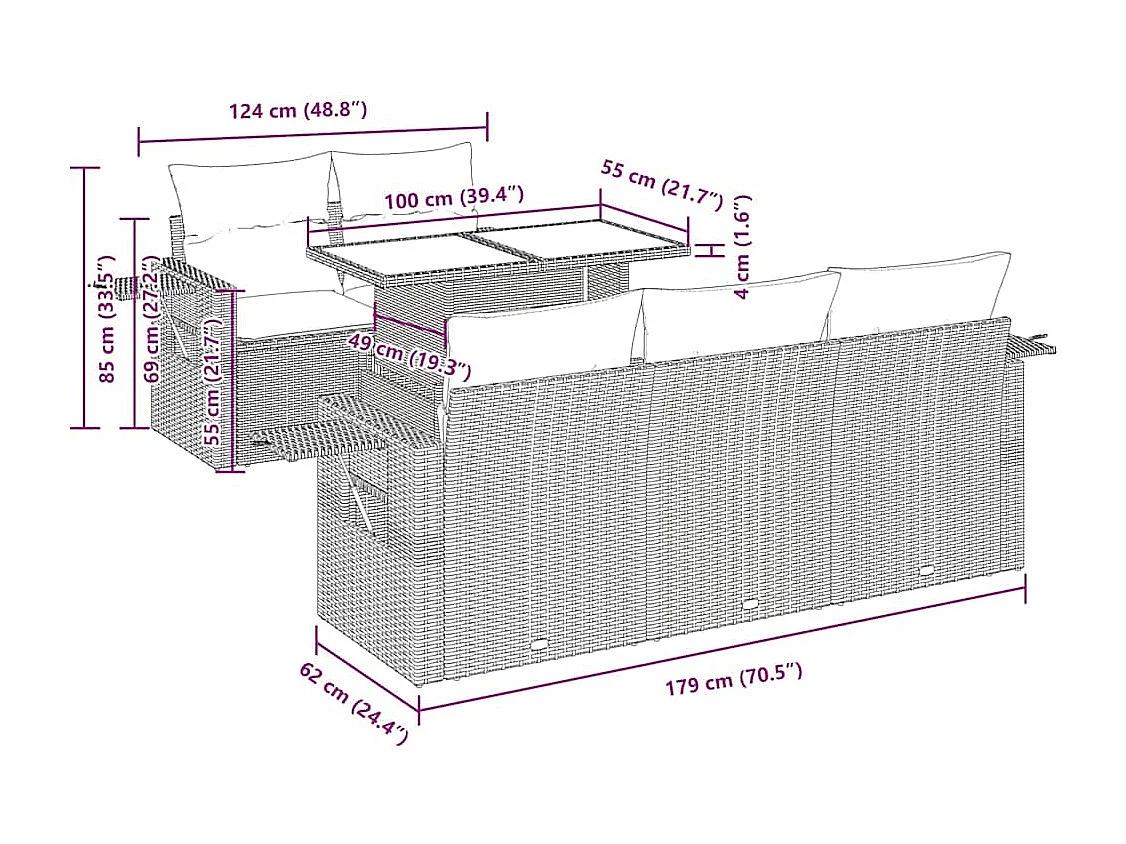 Salon complet de jardin Canapé 2 places et 2 fauteuils