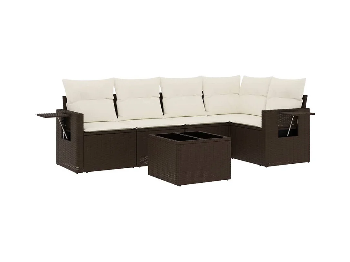 Salon de jardin avec coussins 6 pcs marron résine tressée